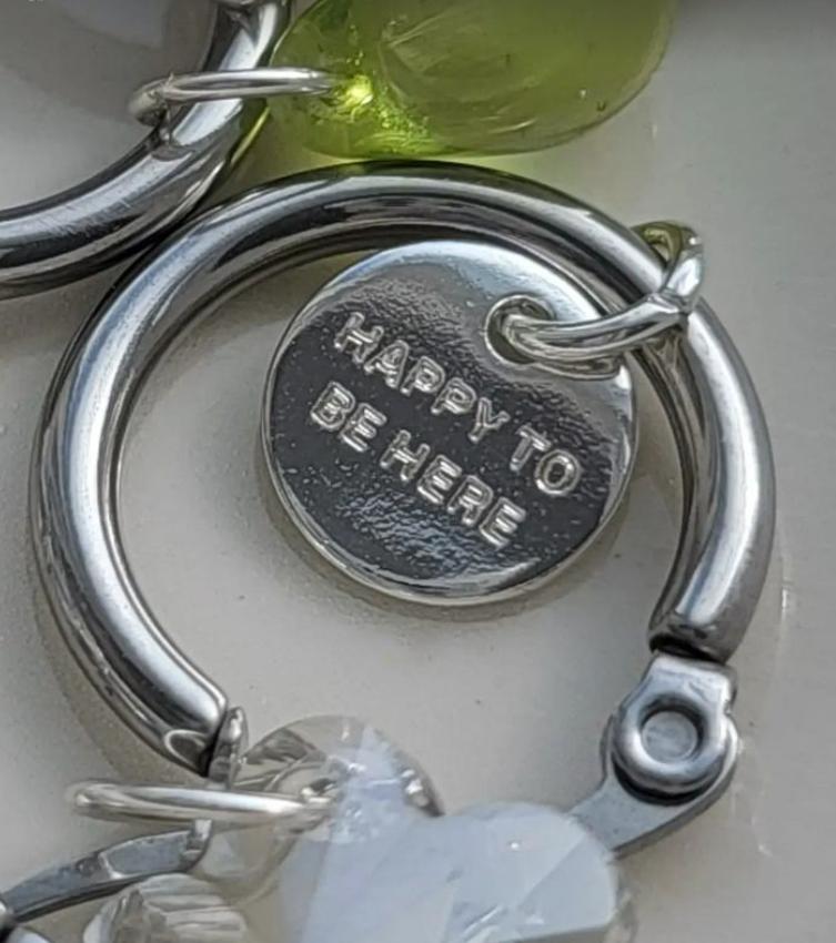 happy to be here is like a momento mori, a reminder that we all have a limited time here. to take a moment to notice when you are happy....& enjoy it.
